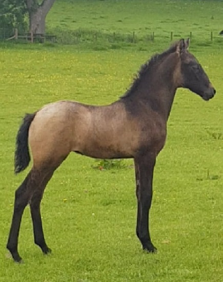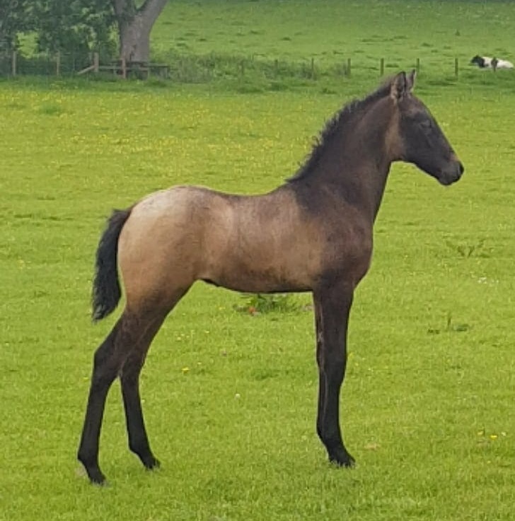 His Sire is Lago Kaiser who is grey and stands at around 16h (he is still growing) and the Dam is Hermosa who is bay and stands at 15h3.