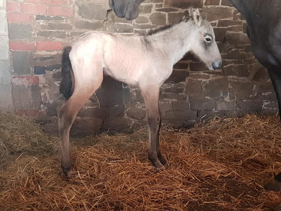 His Sire is Lago Kaiser who is grey and stands at around 16h (he is still growing) and the Dam is Clementina who is Black and stands at 15h3.